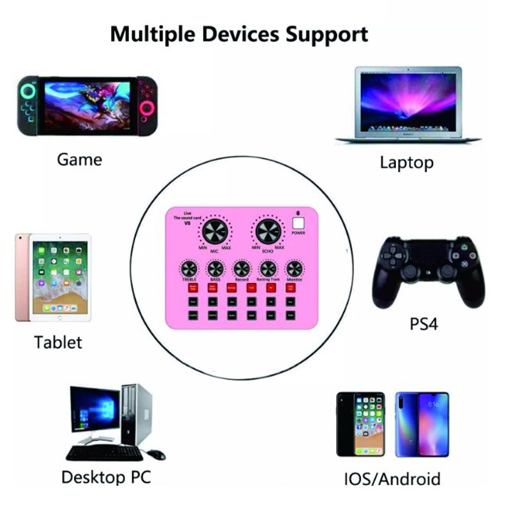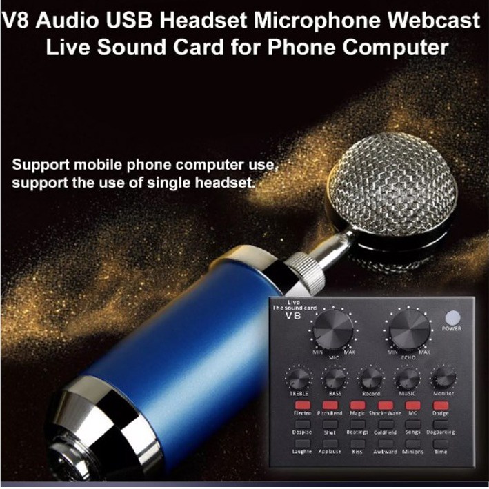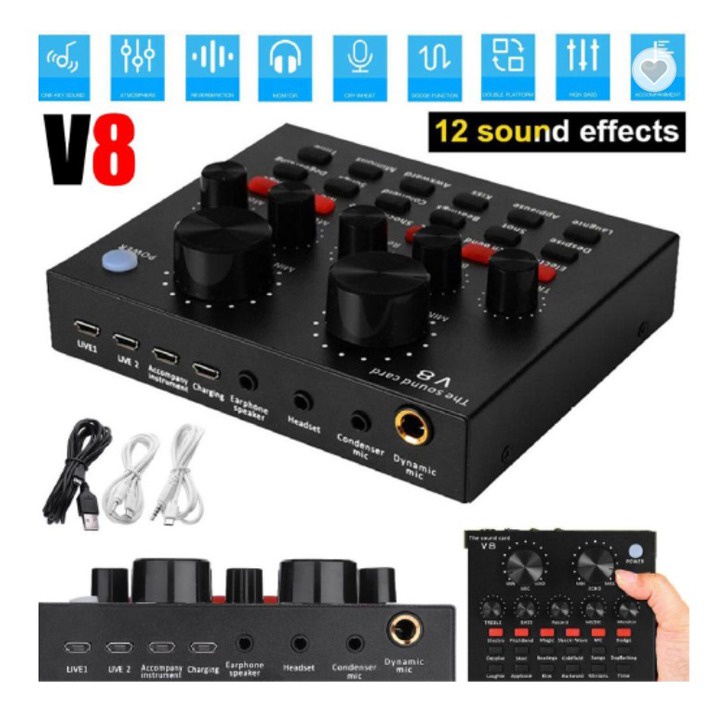 V8 Sound Card V8 Singing Live Soundcard Mixer External Audio Microphone