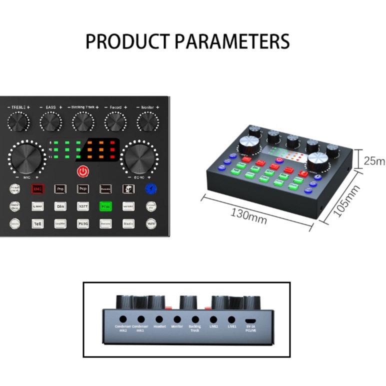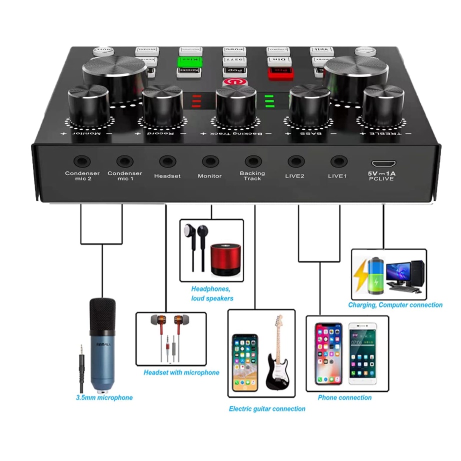 V8S Sound Card Bluetooth Live Mixer Audio USB External Sound card Broadcast Microphone V8S / V17