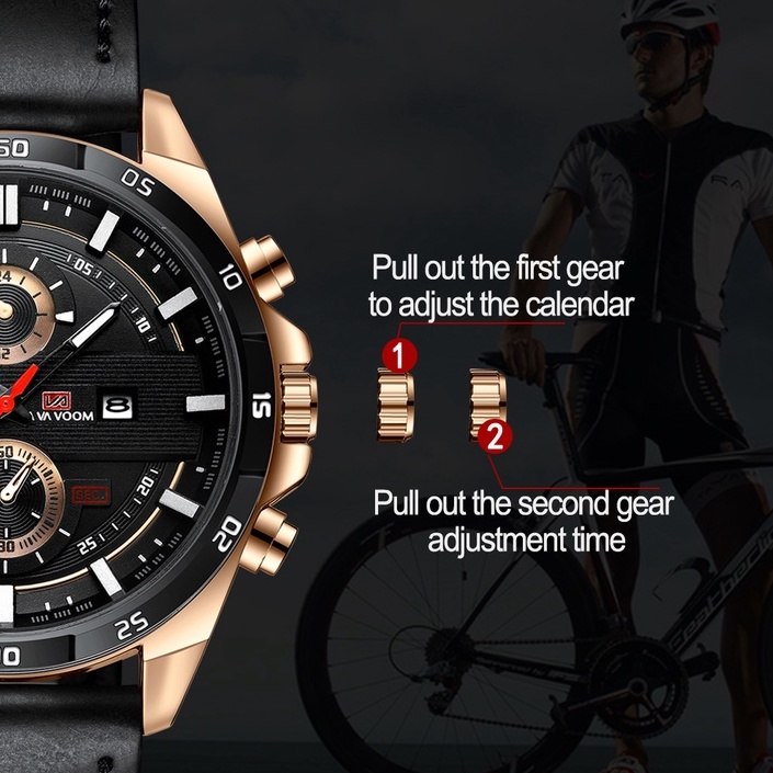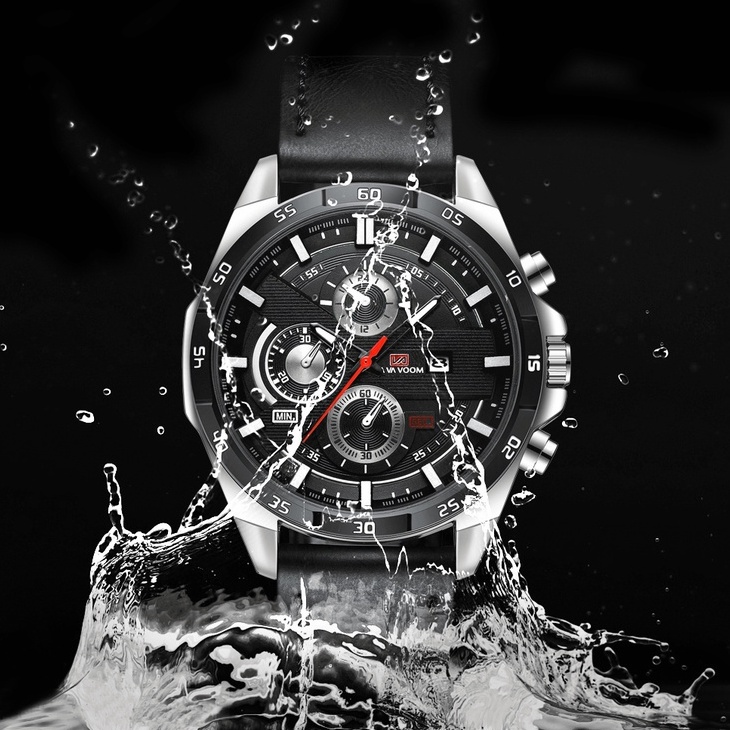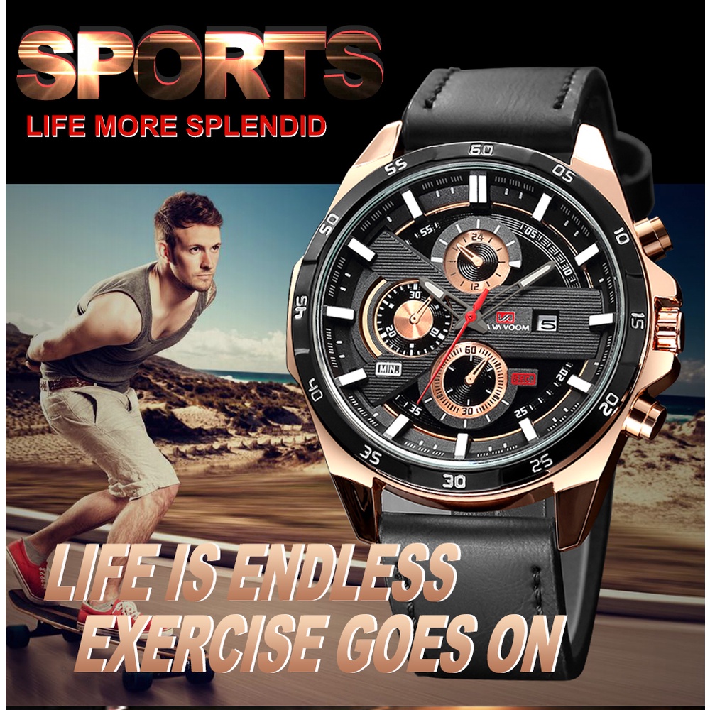 VA VA VOOM 216 Jam Tangan Pria Kulit Stainless Steel Analog Quartz Original Tahan Air Watch + Kotak Gratis