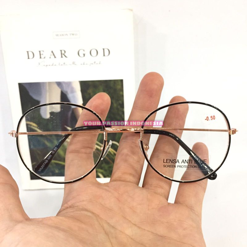 VA207 Kacamata Minus Antiradias Oval -0.50 sd -4.00 Warna Combinasi Hitam Gold