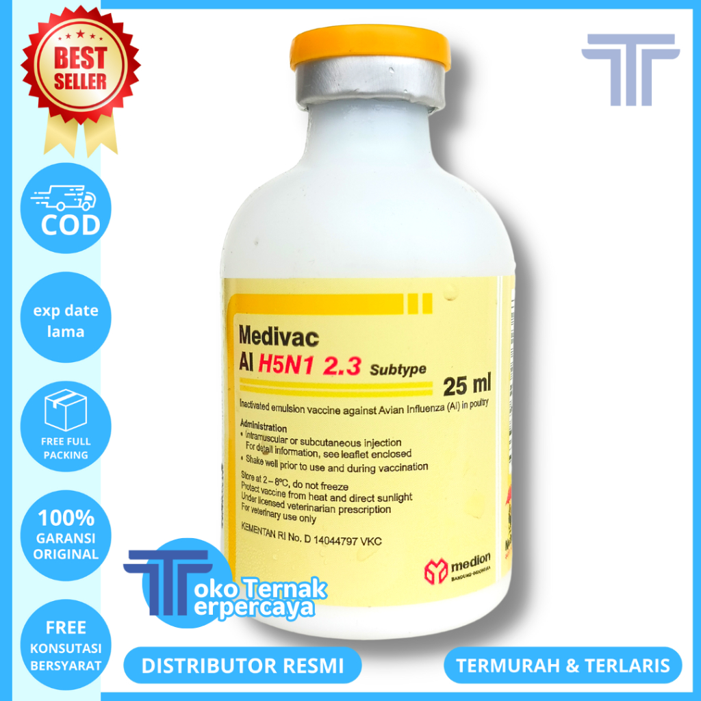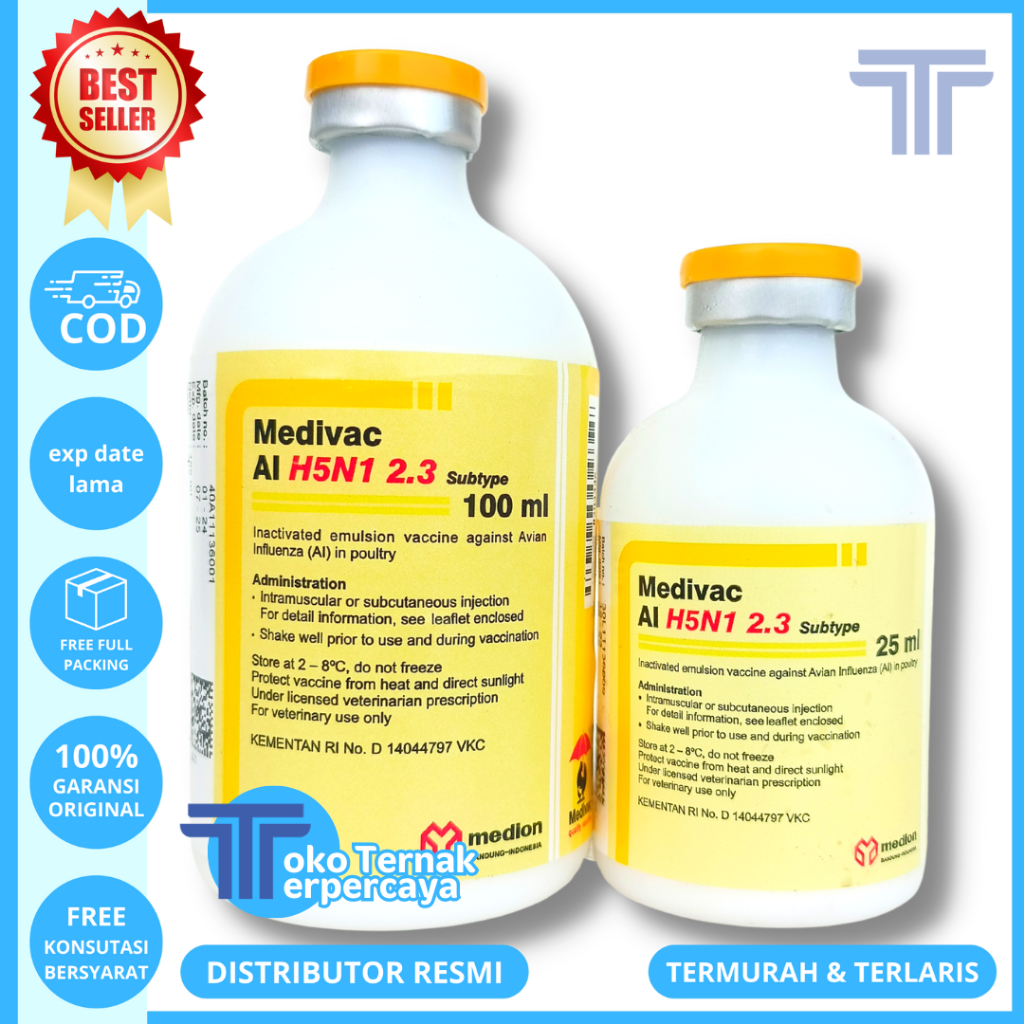 VAKSIN MEDIVAC AI H5N1 2.3 DOSIS 50 & 200 EKOR Vaksin Ayam Flu burung Avian Influenza Aratan Unggas