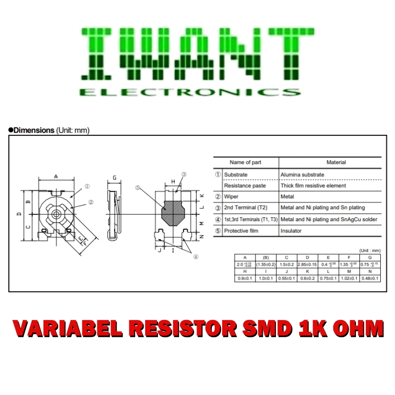 VARIABLE RESISTOR 1K OHM VR 1K SMD VR 102 TRIMPOT 1K VARIABLE RESISTOR OPEN FRAME