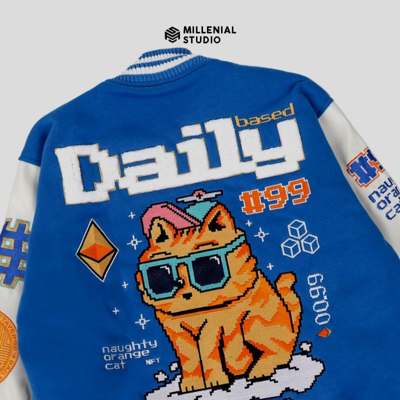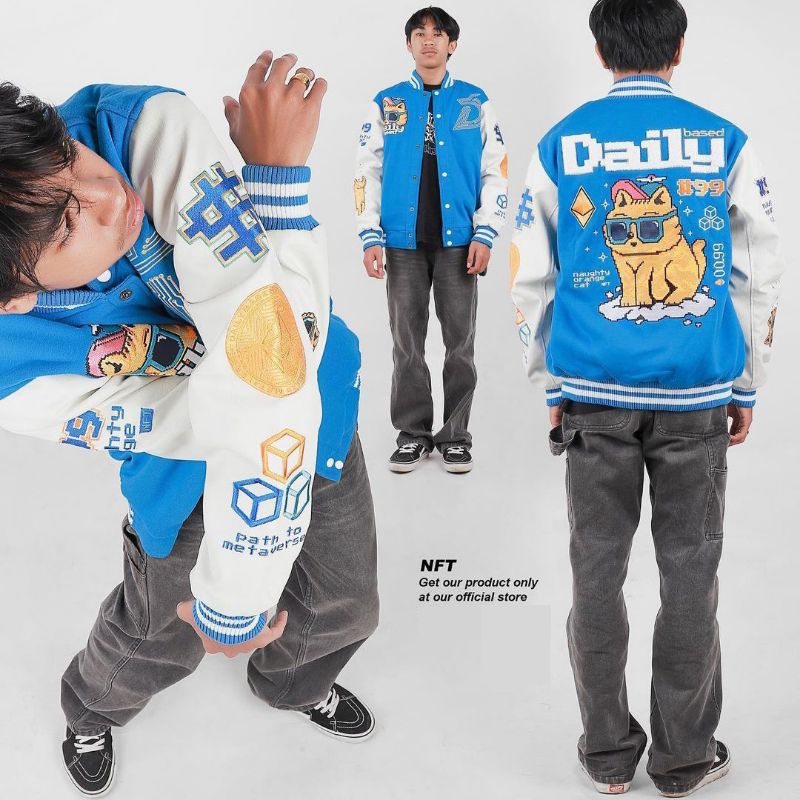 VARSITY JACKET NFT BLUE | JAKET BASEBALL BIRU BORDIR ORIGINAL DAILYBASED | MILLENIAL STUDIO