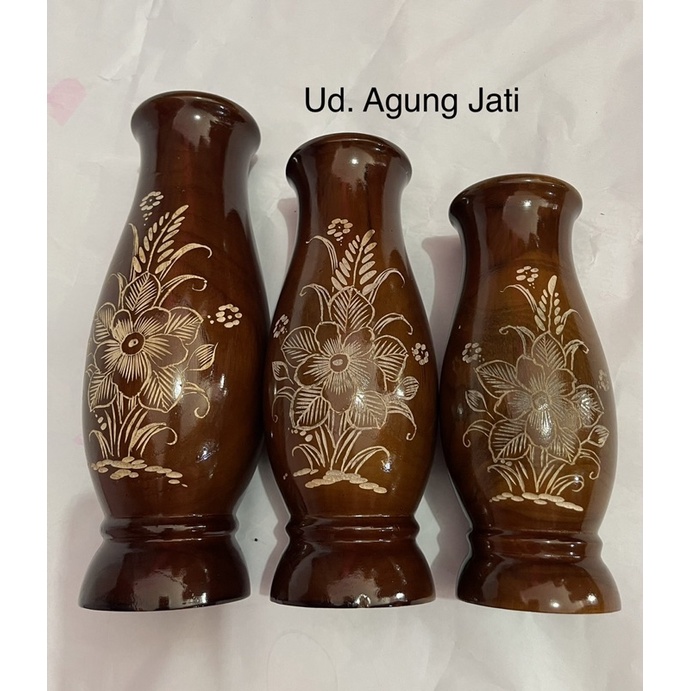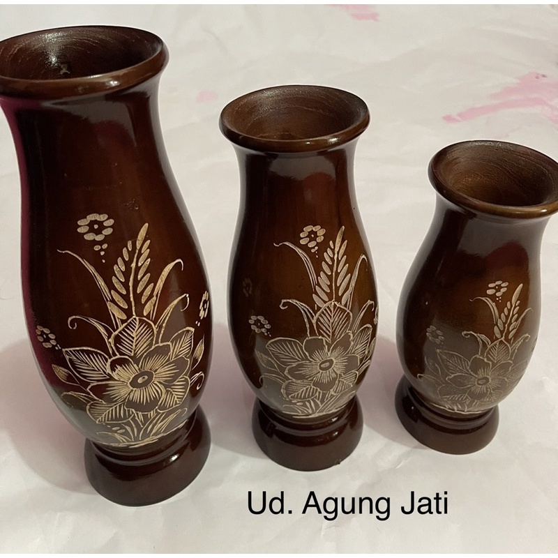 VAS BUNGA DARI KAYU JATI | POT BUNGA | VAS BUNGA KAYU | VAS SET | VAS ISI 3