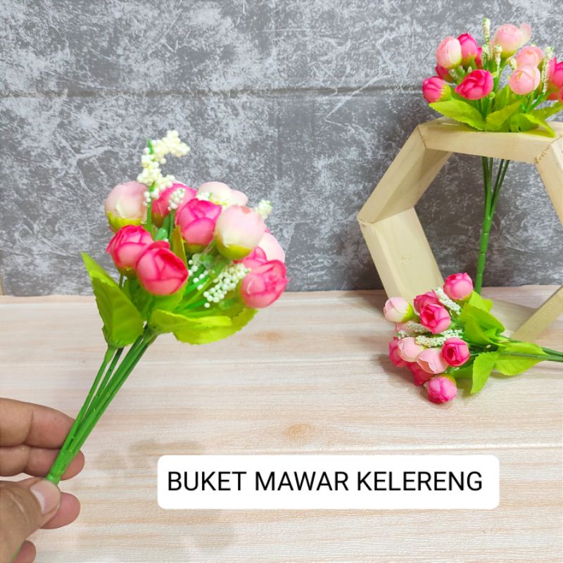 VAS BUNGA KACA BULAT MOCCA / BUKET BUNGA MAWAR ARTIFICIAL / DEKORASI KAMAR RUMAH