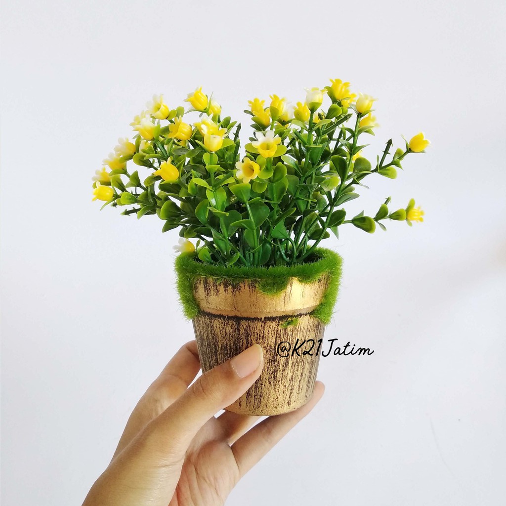 VB27 Vas Bunga Mini Gold Bunga Artifisial Kecil Cantik Flower Pot Vintage Dekorasi Meja