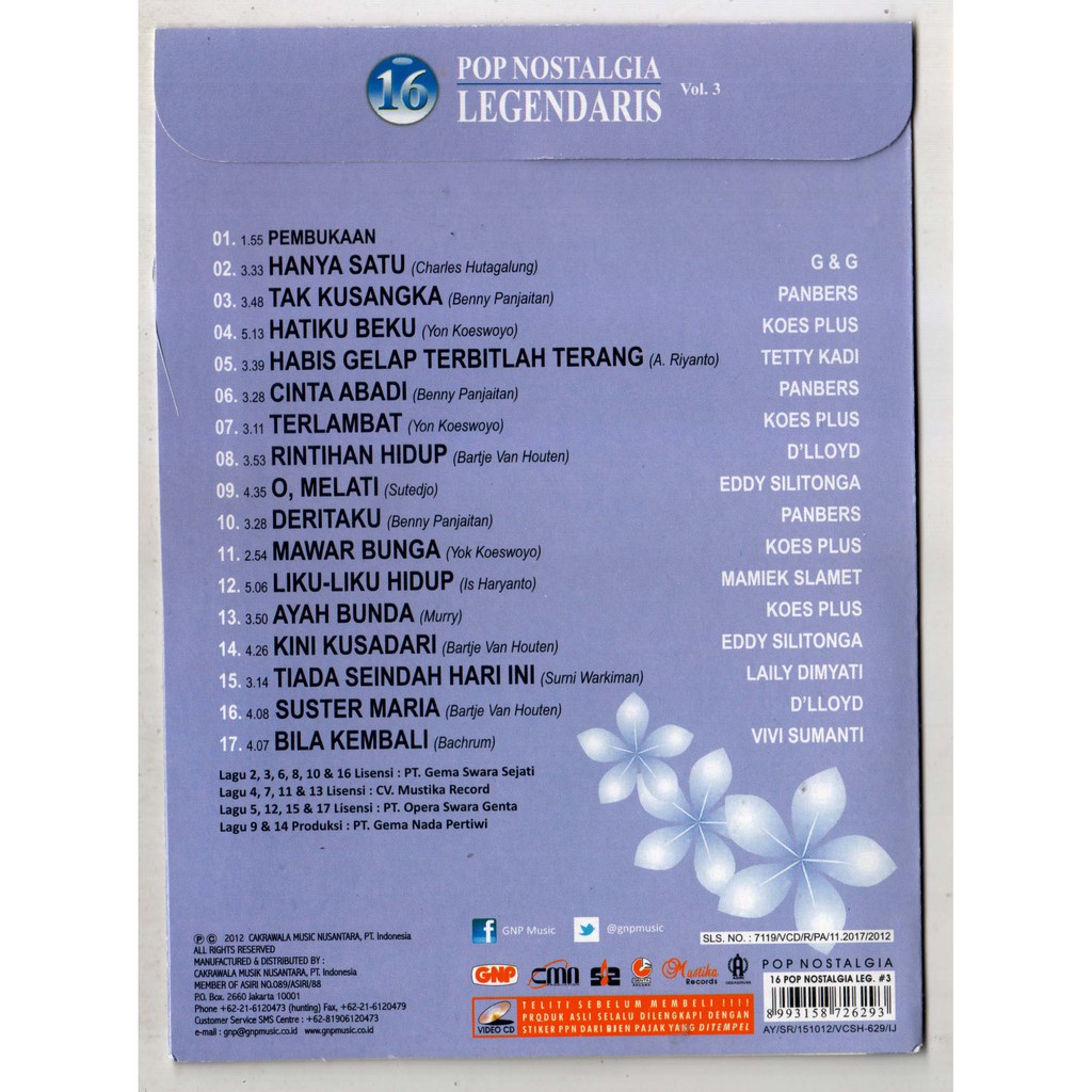 VCD KARAOKE 16 POP NOSTALGIA LEGENDARIS VOL.3 HANYA SATU