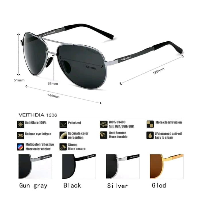 VEITHDIA 1306 kacamata Polarized anti silau UV Original plus minus Cylinder