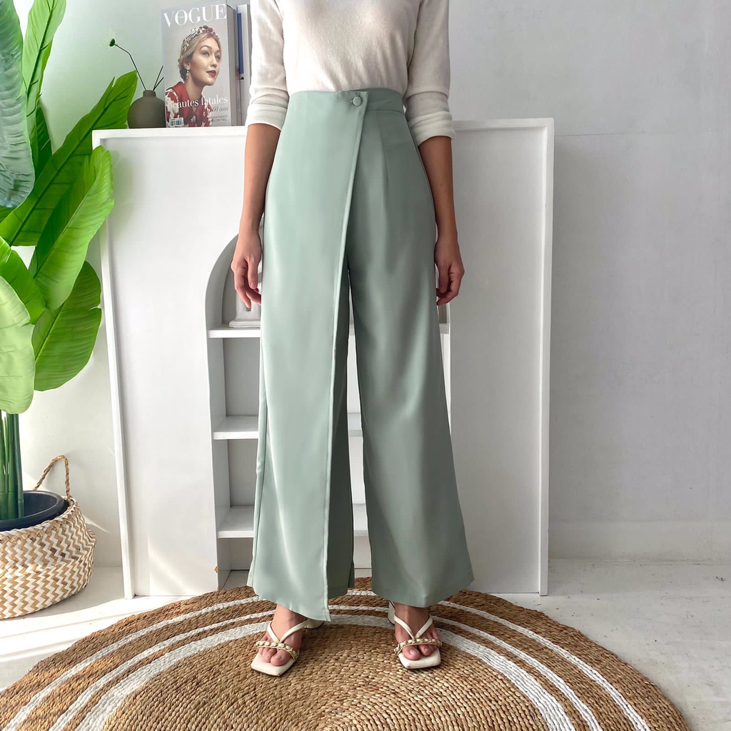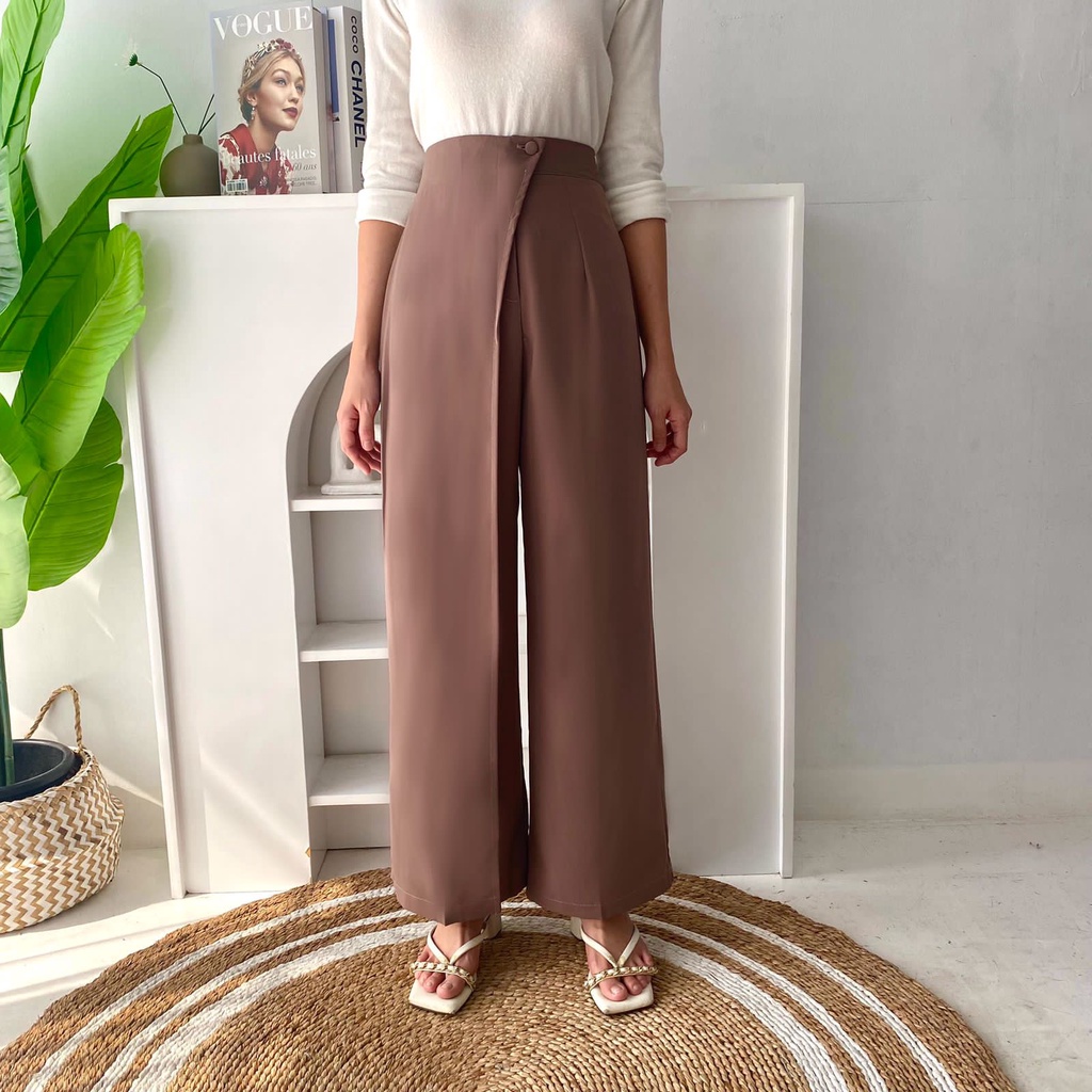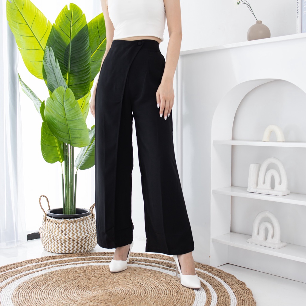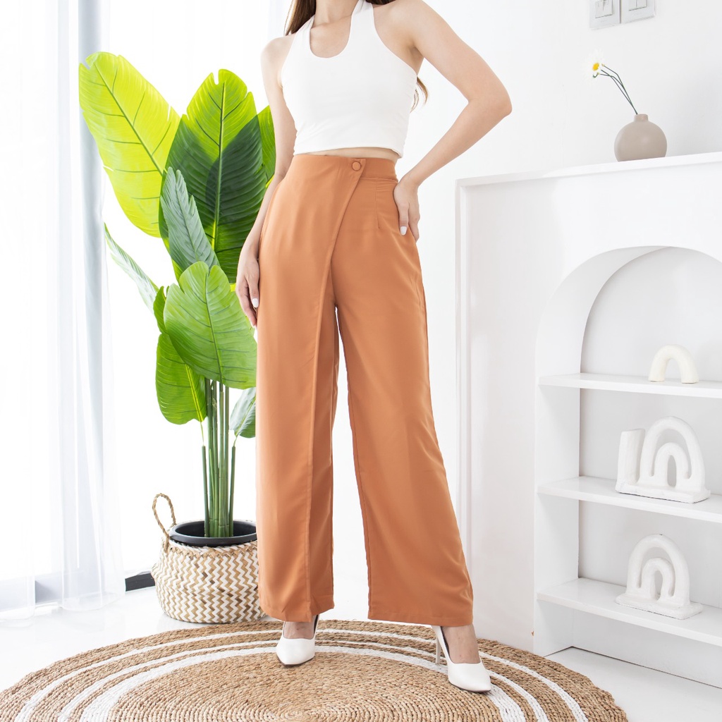 VELOVE - Overlap Kulot Pants - 10 COLOR & 2 SIZE / Celana Kulot wanita / Celana Panjang wanita / V1054