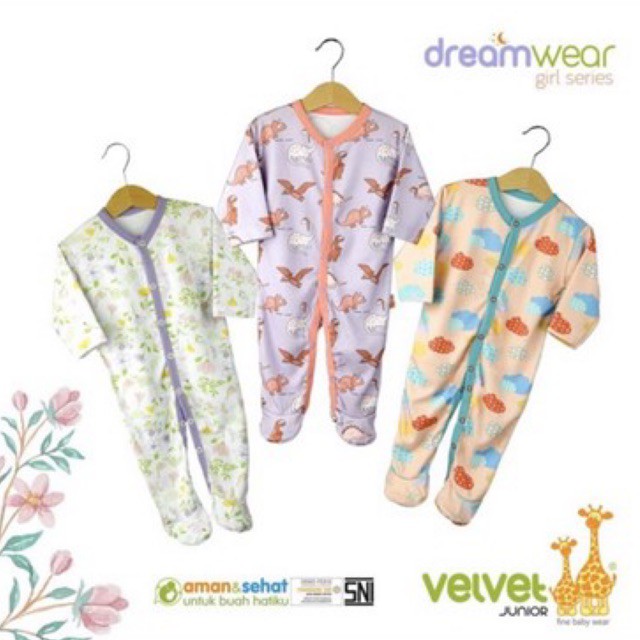 VELVET JUNIOR SLEEPSUIT BAJU TIDUR BAYI MOTIF DINOSAURUS SIZE 3-6M