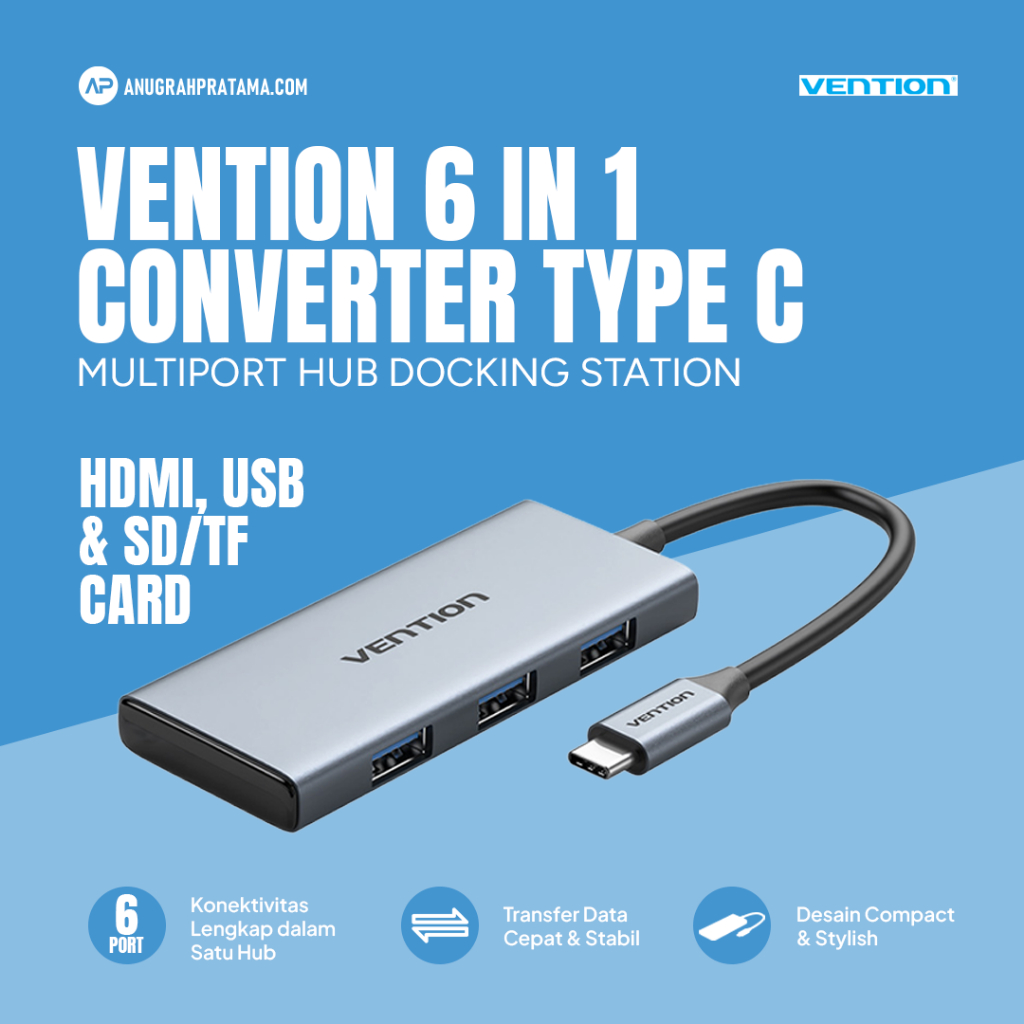 VENTION 6 in 1 Converter Multiport Hub Type C Docking Station (TOO) Satu Hub, Banyak Solusi!