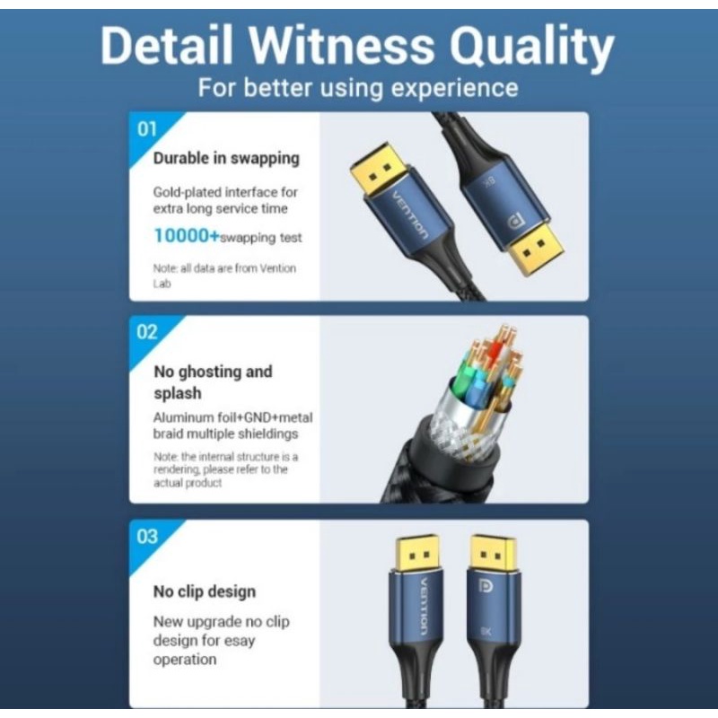 VENTION Kabel DP Display Port Male to Male High Refresh Rate - HCE Blue, 1.5 Meter