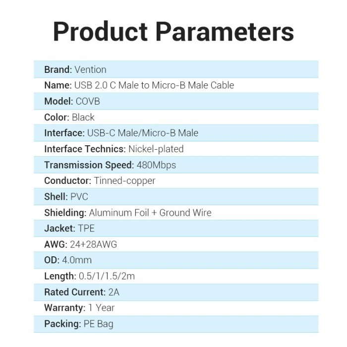 VENTION Kabel Data Type C to Micro USB 2A Cable USB C to Mikro B COV
