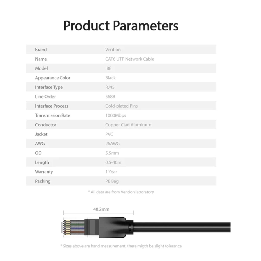 VENTION Kabel LAN RJ45 Cat.6 Cat.5e Gigabit UTP Patch Ethernet Cable Panjang Hingga 30 Meter Hitam