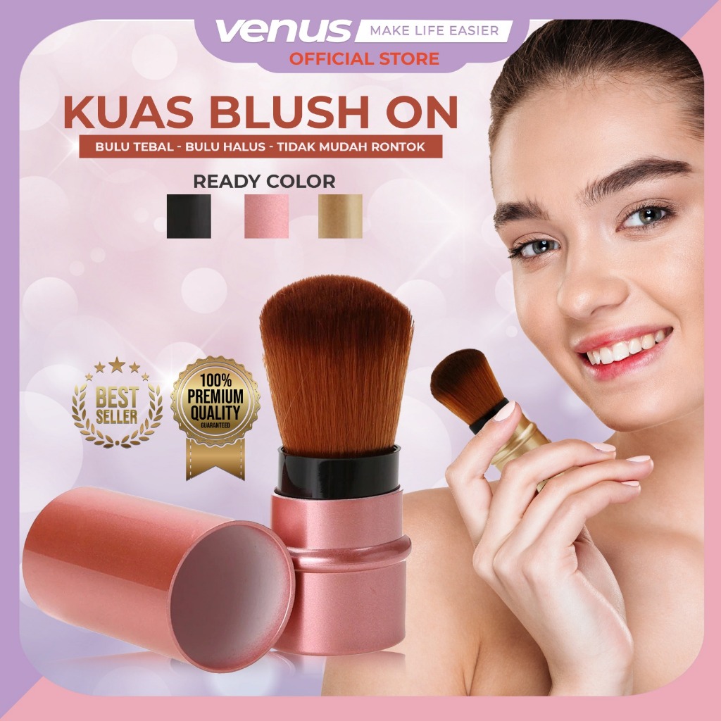 OLSEE - Makeup Brush / Powder Brush / Brush Blush On / Kuas Blush On / Kuas Bedak / Kuas Makeup Lembut / Brush Blush On Kuas Make Up Rias Dapat Ditarik Dengan Penutup / Portable Make Up Tool / Mini Travel Portable Brush Powder Foundation Brushes