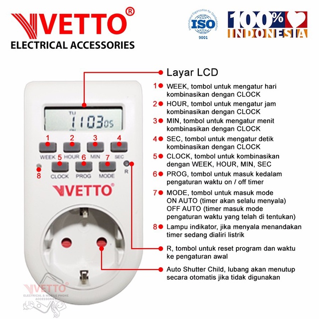 VETTO Stop Kontak Timer Digital Listrik - 1 Minggu