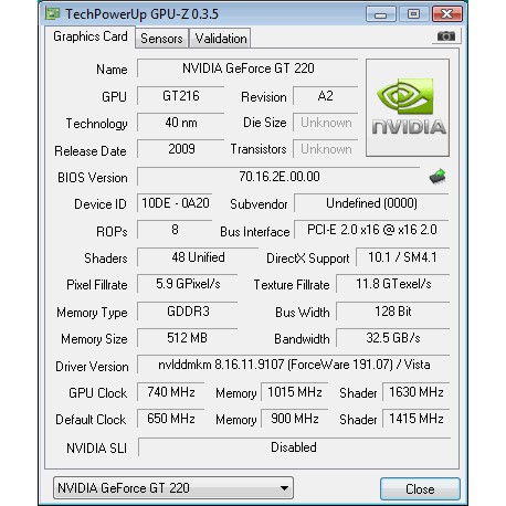 VGA 512MB 128BIT DDR3