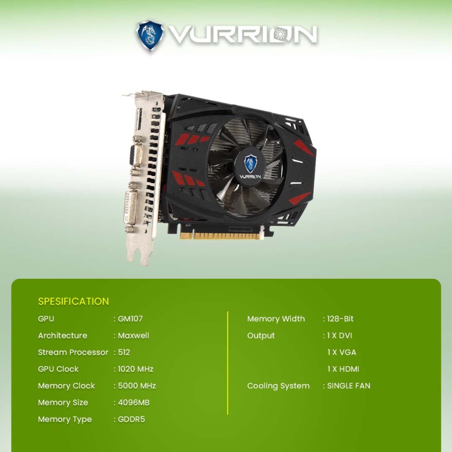 VGA Gaming VURRION GTX 750TI 4GB DDR5 128Bit GAMING VGA VURRION