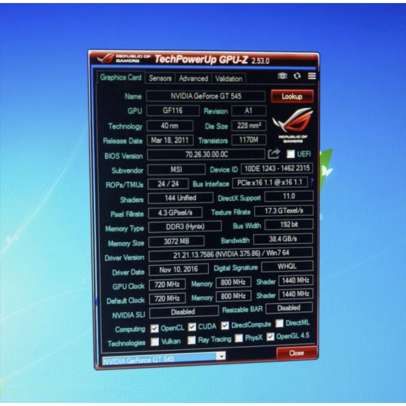 VGA MSI NVIDIA GT 545 3GB-192BIT-DDR3, HDMI-DVI-VGA