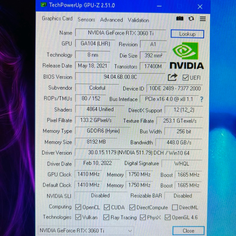 VGA RTX 3060Ti 8GB COLORFUL BATTLEAX GDDR6/ RTX 3060 Ti 8GB