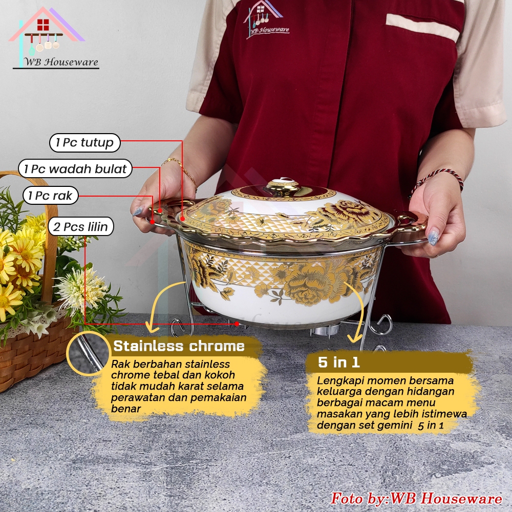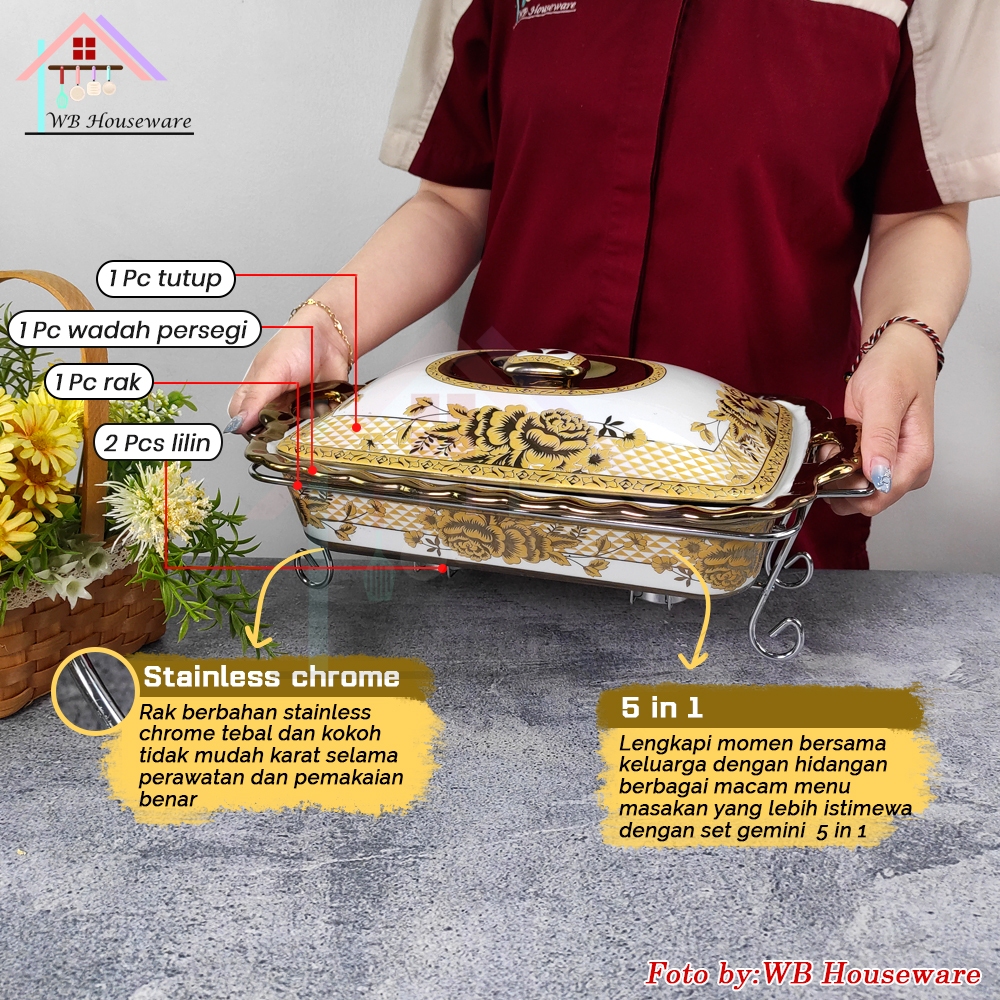 VICENZA Paket Prasmanan lengkap 4 segi + 1 bulat keramik motif gemini / casserole with rack type 680 - 681