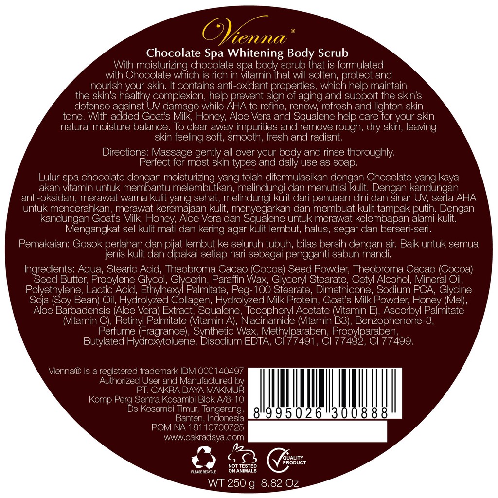 VIENNA BODY SCRUB NOURISHING CHOCOLATE - 250G JAR