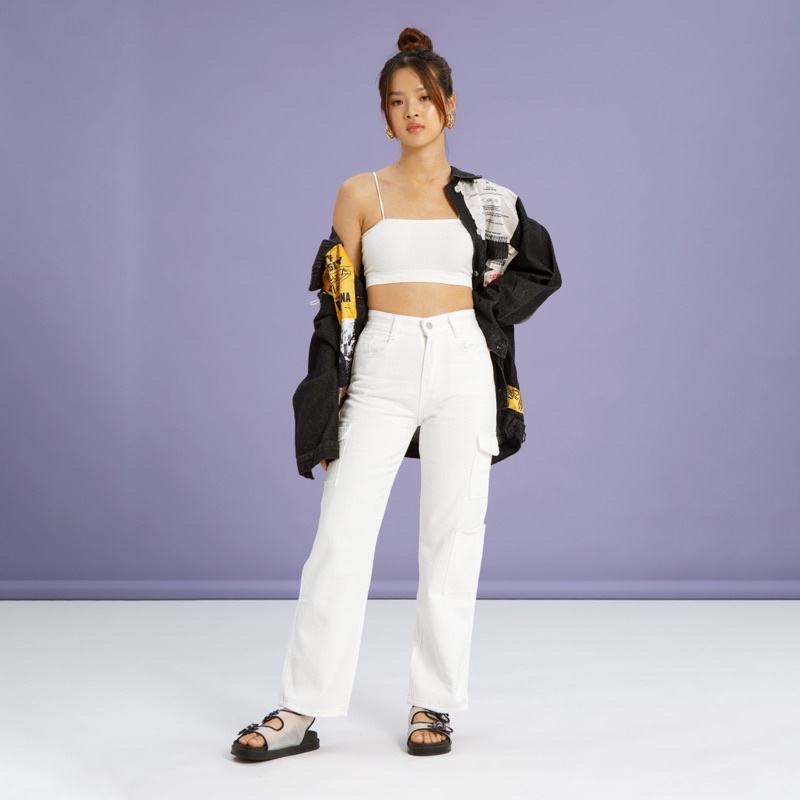 VIERLIN - Jeans 7735 1332 - HW CARGO WHITE JEANS