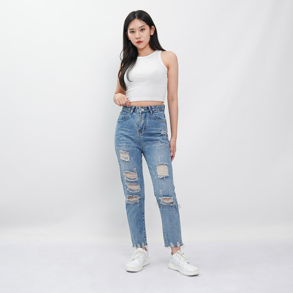 VIERLIN - Jeans 8828 - CELANA JEANS SOBEK WANITA RIPPED HIGHWAIST