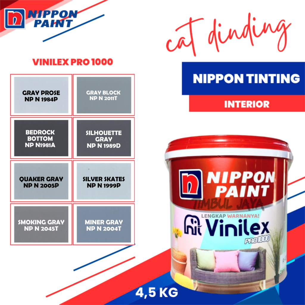 VINILEX Pro1000 4,5Kg Cat Tembok Nippon Paint Interior Dalam Ruangan Warna ABU ABU / Cat Nippon Paint Vinilex / Cat Nippon Vinilex / vinilex abu abu / nipon vinilex / vinilex grey