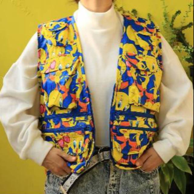 VINTAGE 90s HUNTER VEST ROMPI WB TWEETY BIRD PATTERN UNISEX