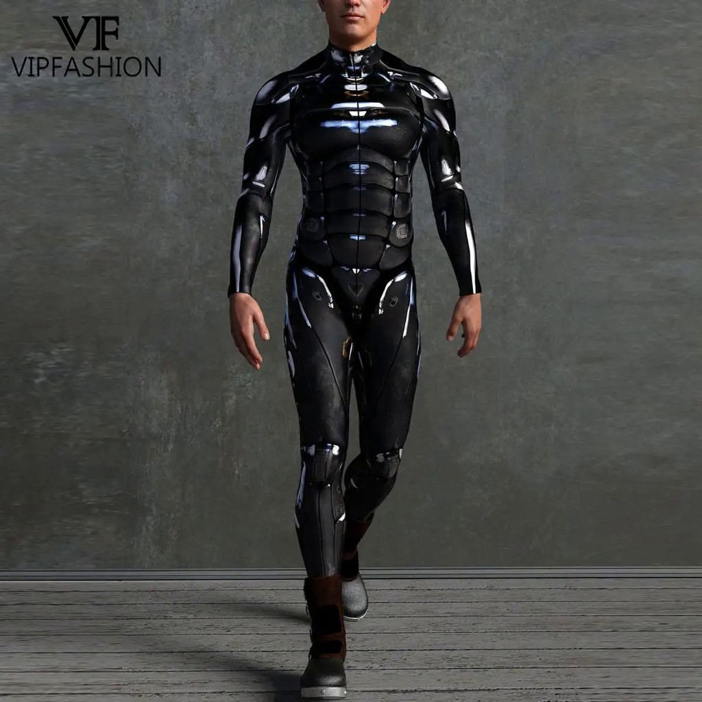 VIPFASHION Robot Costume Men Punk Cosplay Bodysuit Purim Carnival Halloween Zentai Suit 3D Printed Catsuit Rave Party Clothes
