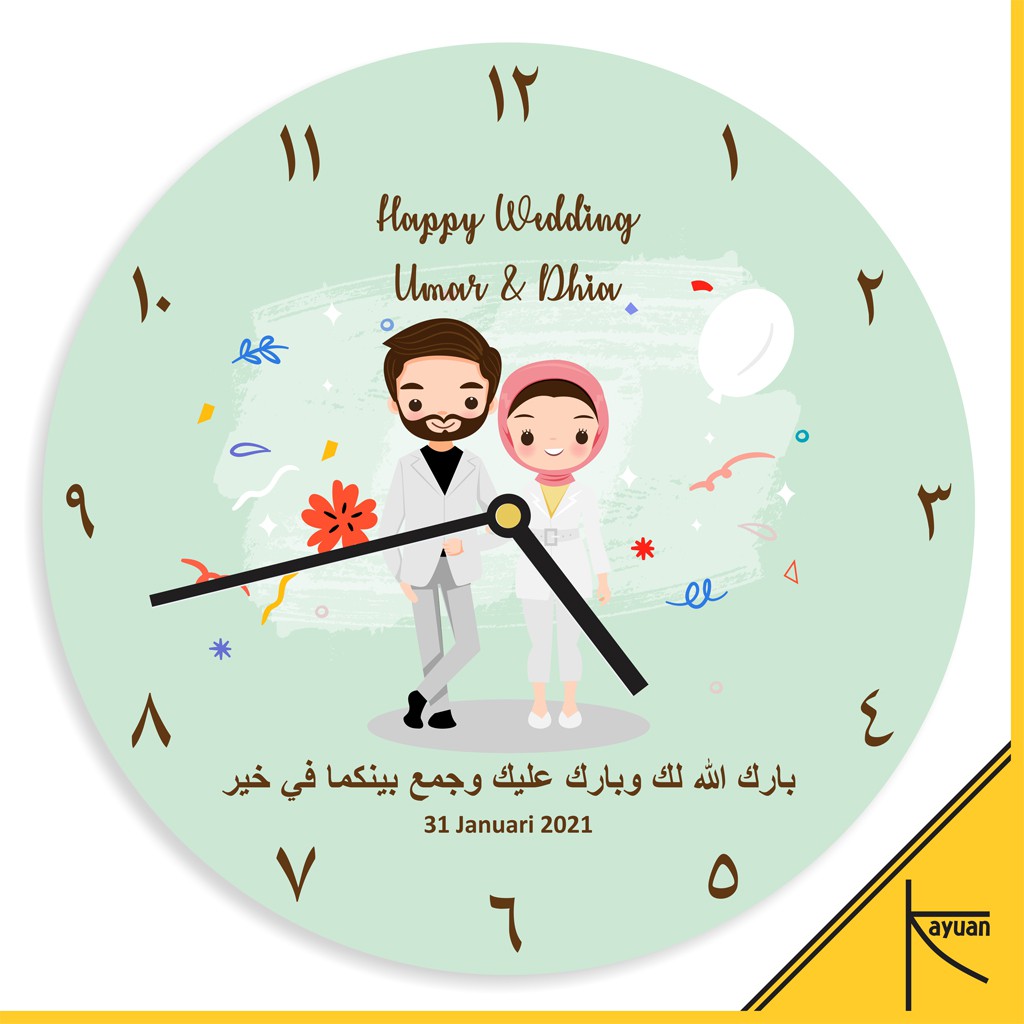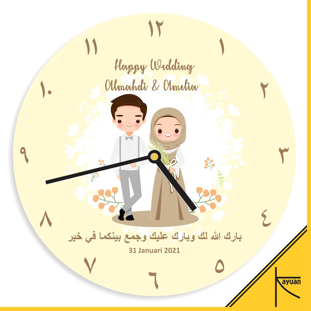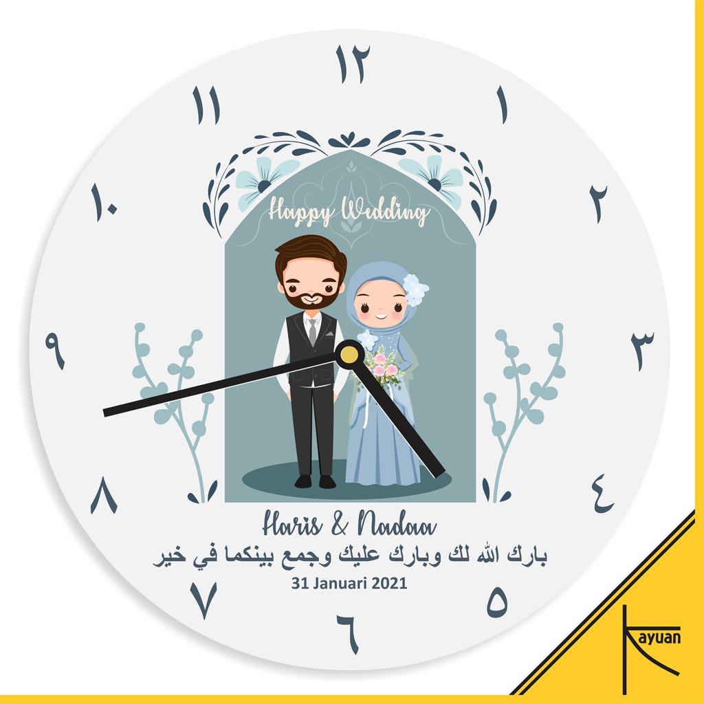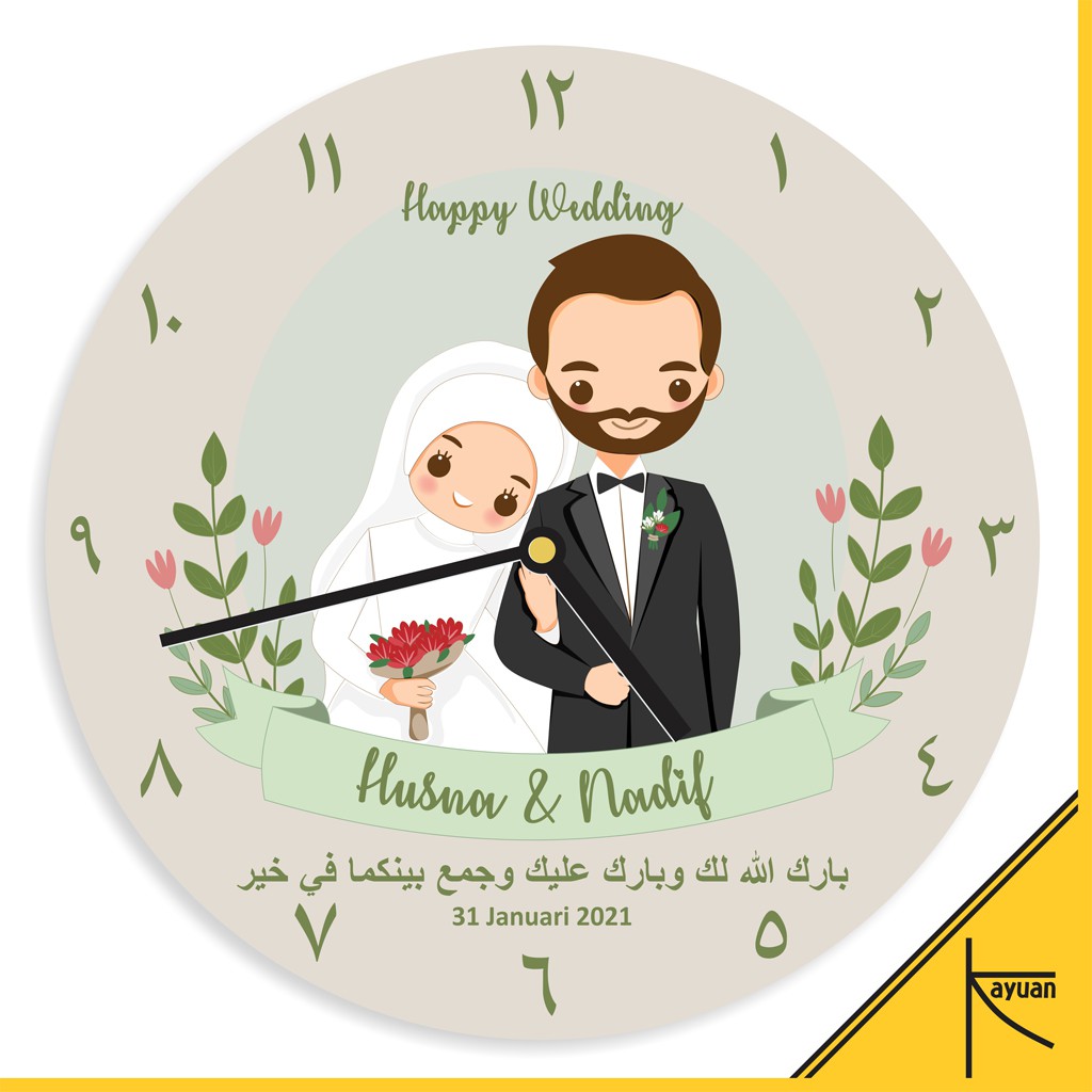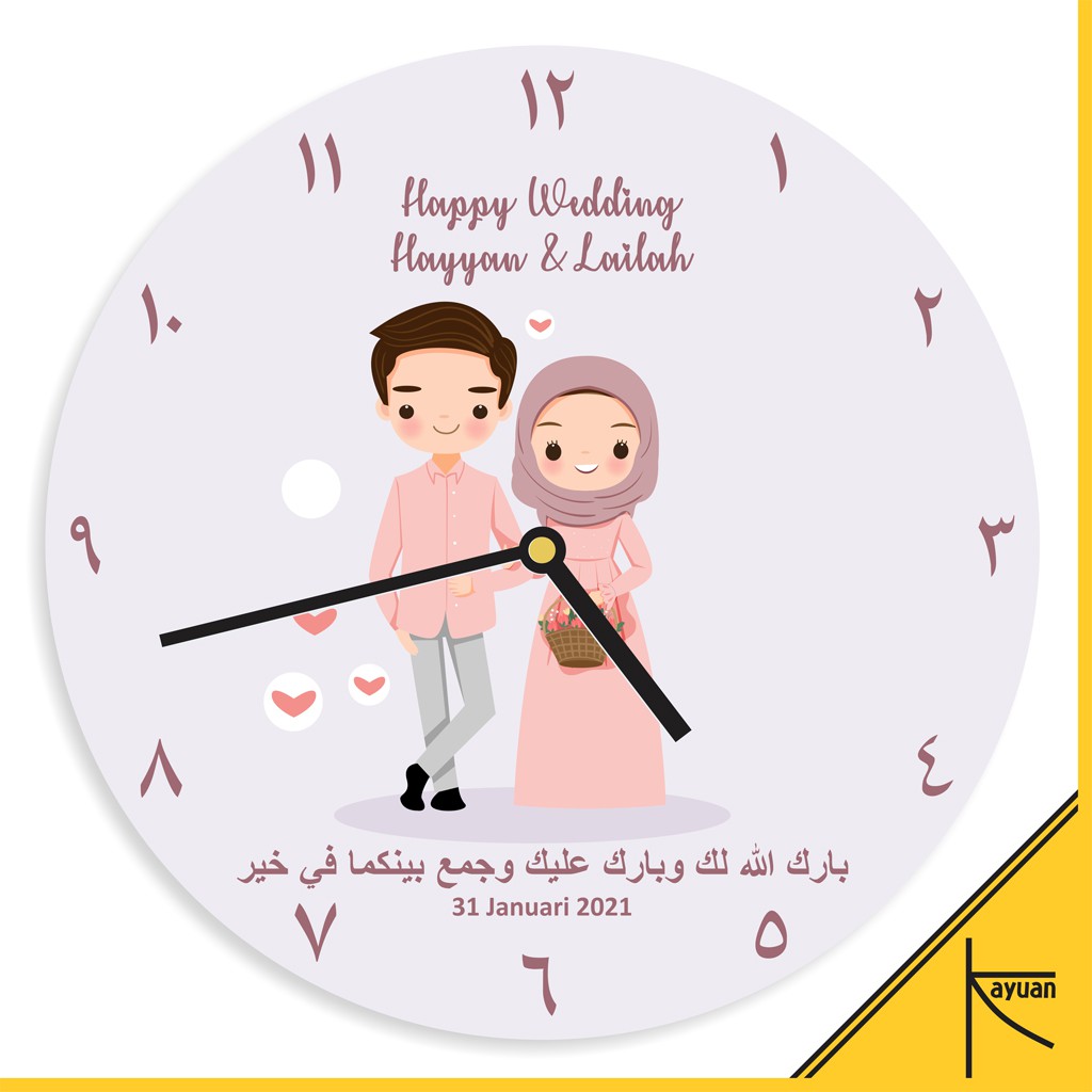 VIRAL!. Jam Dinding Kayu Custom Nama Kado Pernikahan Souvenir Nikah Kartun Couple Hijab