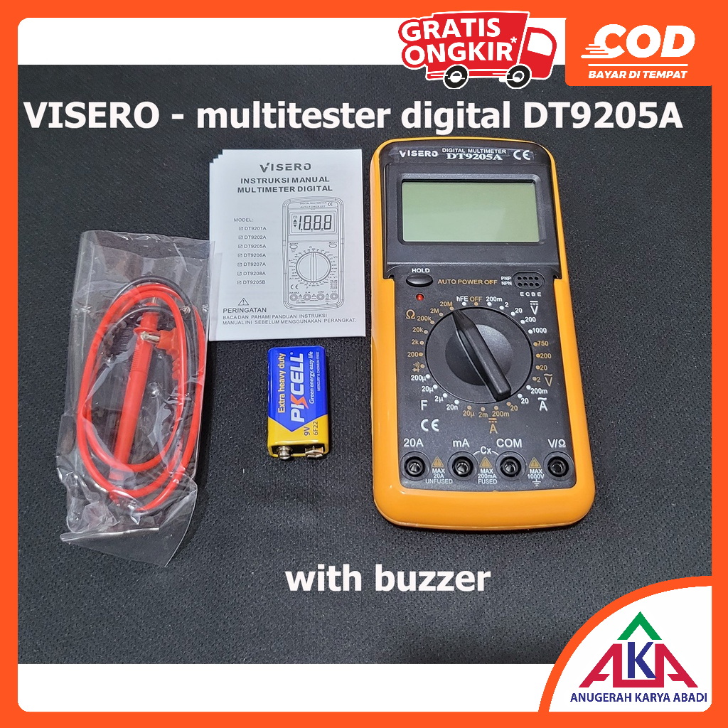 VISERO DT9205A Multitester / Avometer / Multimeter Digital Jumbo Buzzer 32 Fungsi