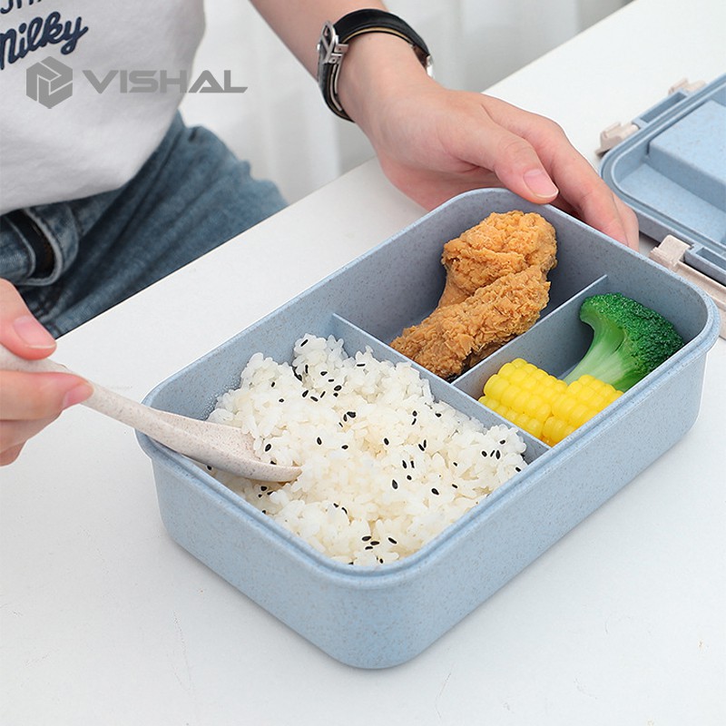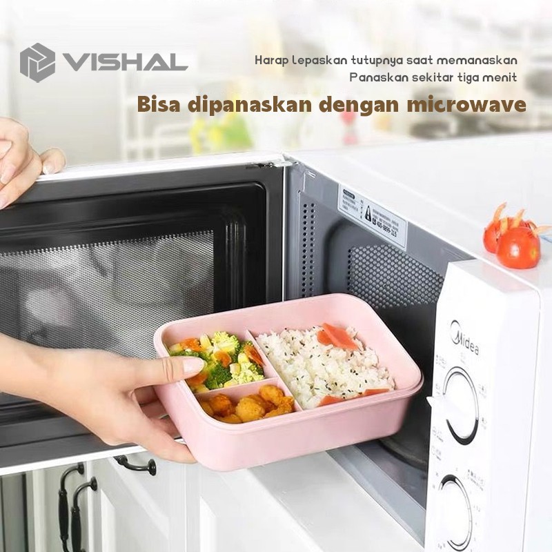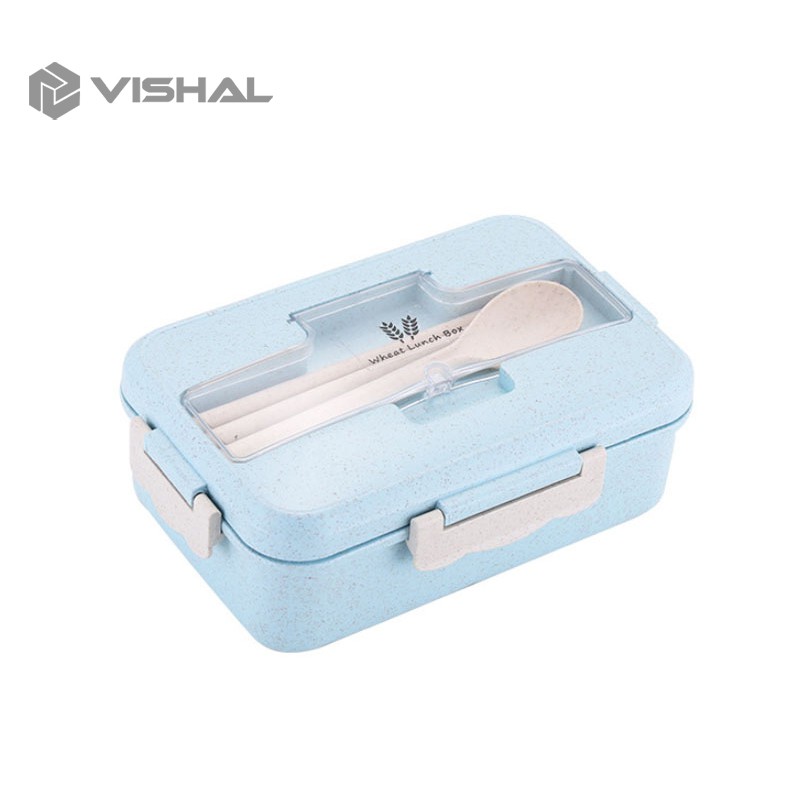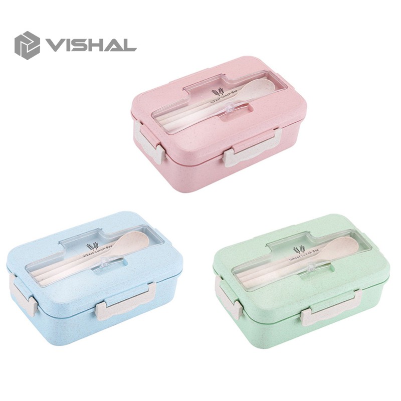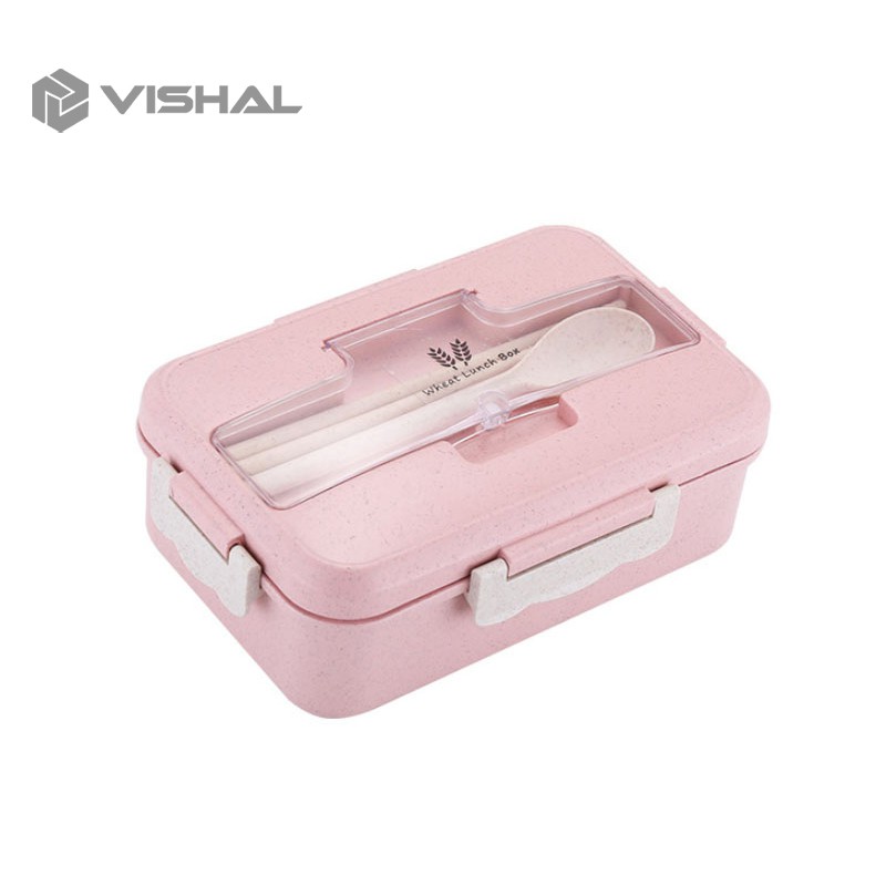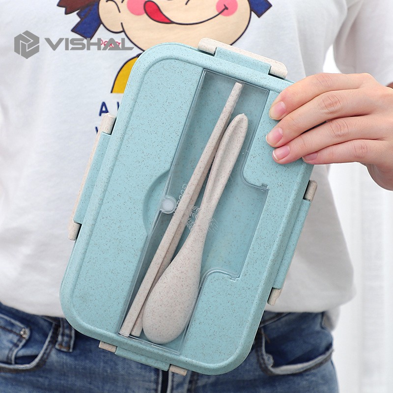 VISHAL Lunch Box Kotak Bekal Makan Jerami Gandum kotak makan 1000ml 4 In 1 Free Sendok Tempat Makan