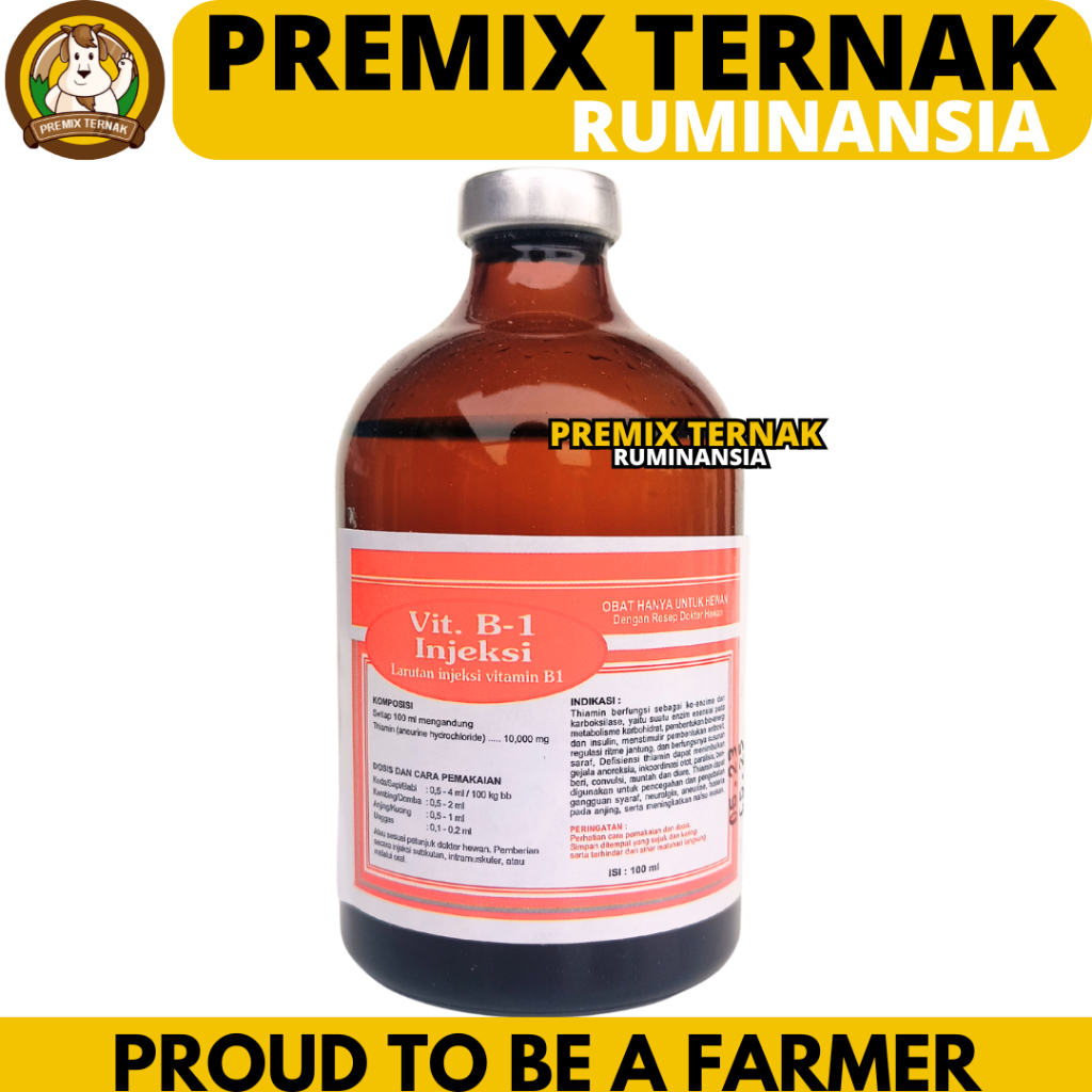 VIT B1 INJ 100ML (OREN) - Vitamin B1 Hewan Ternak Sapi Kambing Babi Anjing Unggas Like B1 Wonder