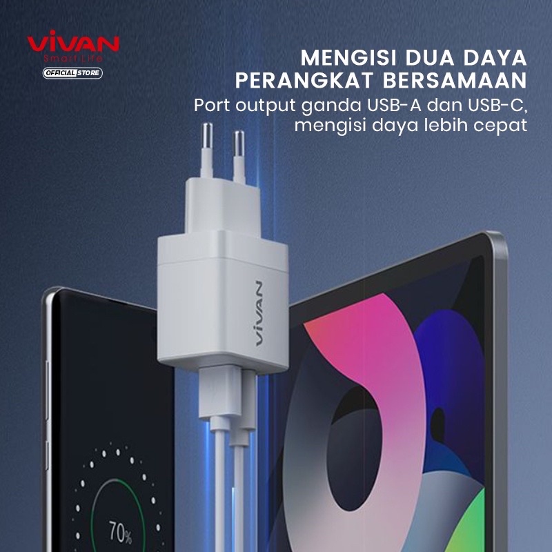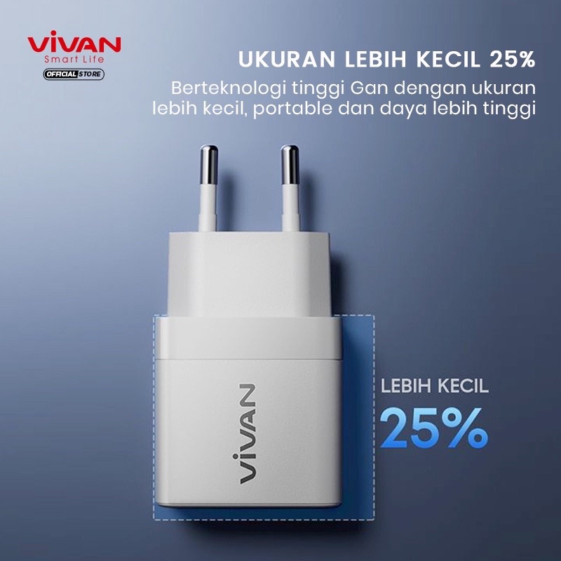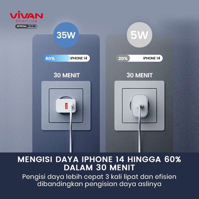 VIVAN Adaptor Charger Power 35 Batok Charger Fast charging Dual Output Quick Charging 35A With Type-C+USB Garansi Original Resmi