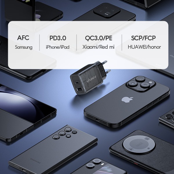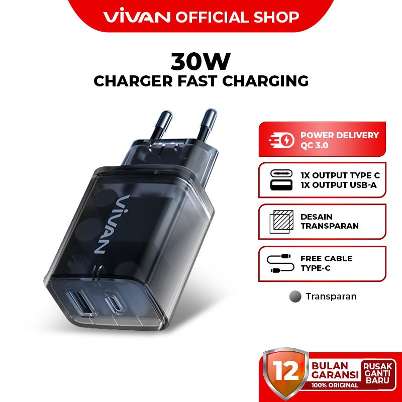 VIVAN Charger Fast Charging Type C USB 30W Dual Output Power 30T Garansi Resmi 1 Tahun