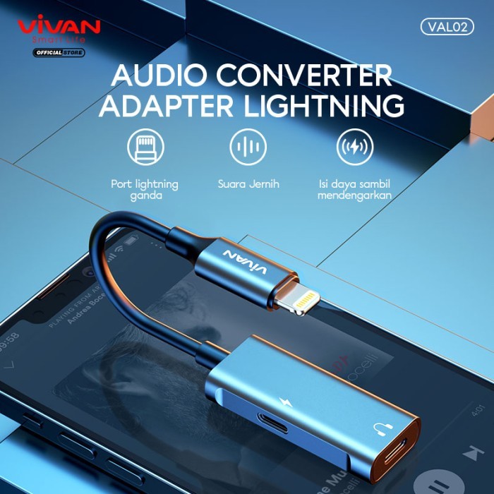 VIVAN Converter VAL01/VAL02 Splitter Lightning to Jack Audio AUX 3.5 mm + Lightning Charghing Call - Garansi Resmi