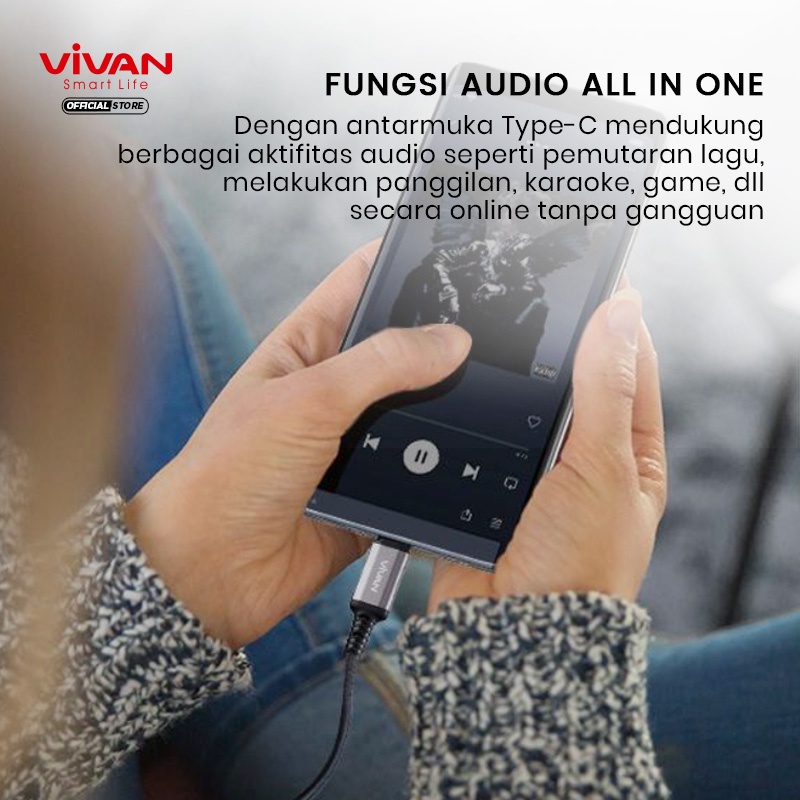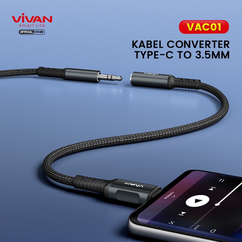 VIVAN Kabel Converter Type C to Jack AUX 3.5mm VAC01 Audio All in One-Garansi Resmi 1 TAHUN