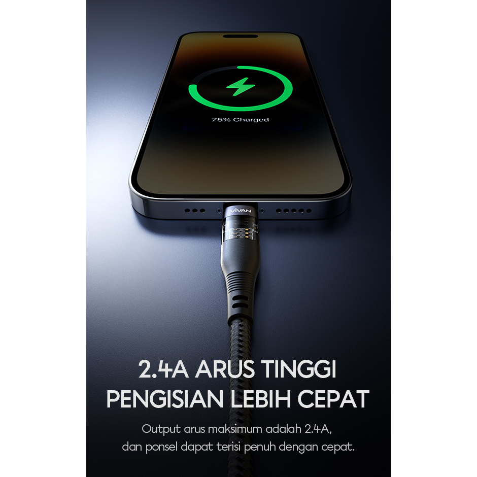VIVAN Kabel Data Explore-AL Data Cable 2.4A - 100CM Lightning for iphone Series Transparent Design Garansi Original Resmi