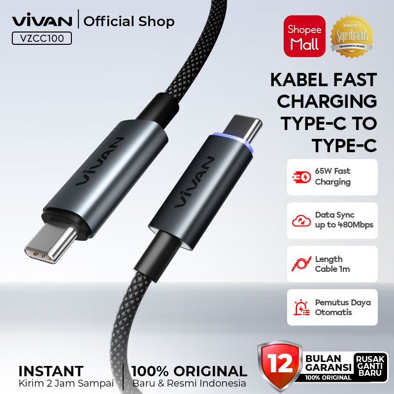 VIVAN Kabel Data Iphone VZL100S / Micro VZC100S / Cable Data Seri VZ 2.4A Smart Chip Automatic Power-Off QC3.0 100CM Garansi Resmi 1 Tahun