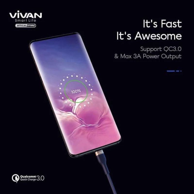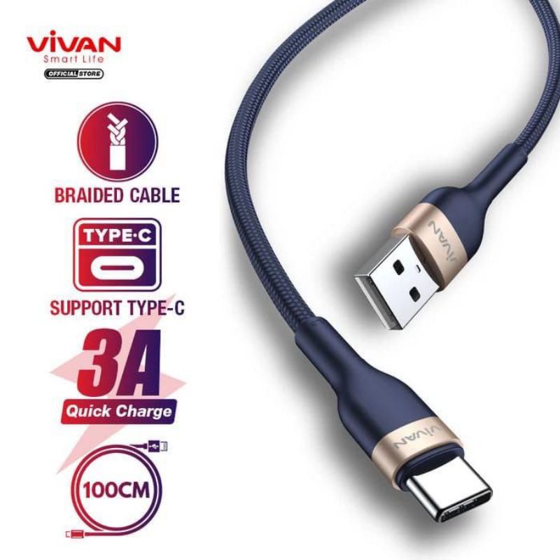 VIVAN Kabel Data Type C VXC100 100cm Fast Charging 3A Original Garansi Resmi