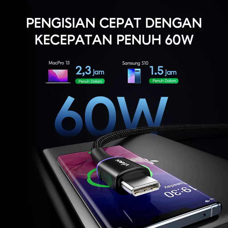 VIVAN Kabel Data Type-C to Lightning Iphone / Type-C to Type-C Android Cable Data 120cm 3A LED Garansi Original Resmi