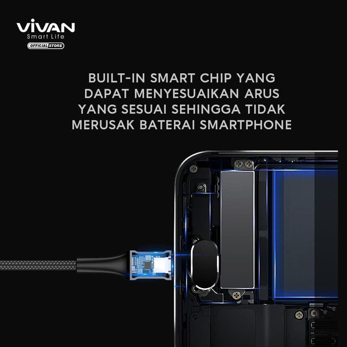 VIVAN Kabel Data VDM Data Kabel Micro USB Android 2.4A 100CM /200CM LED Light Quick Charge Garansi Original Resmi