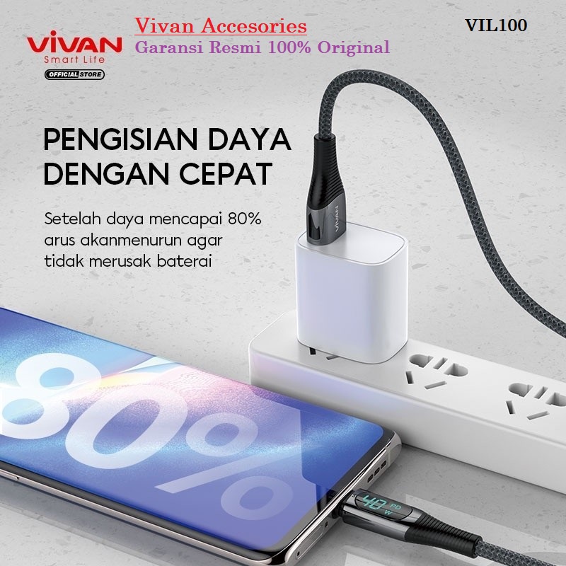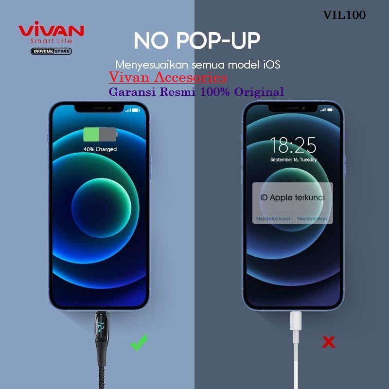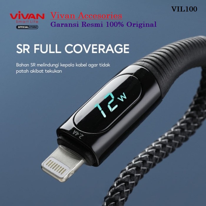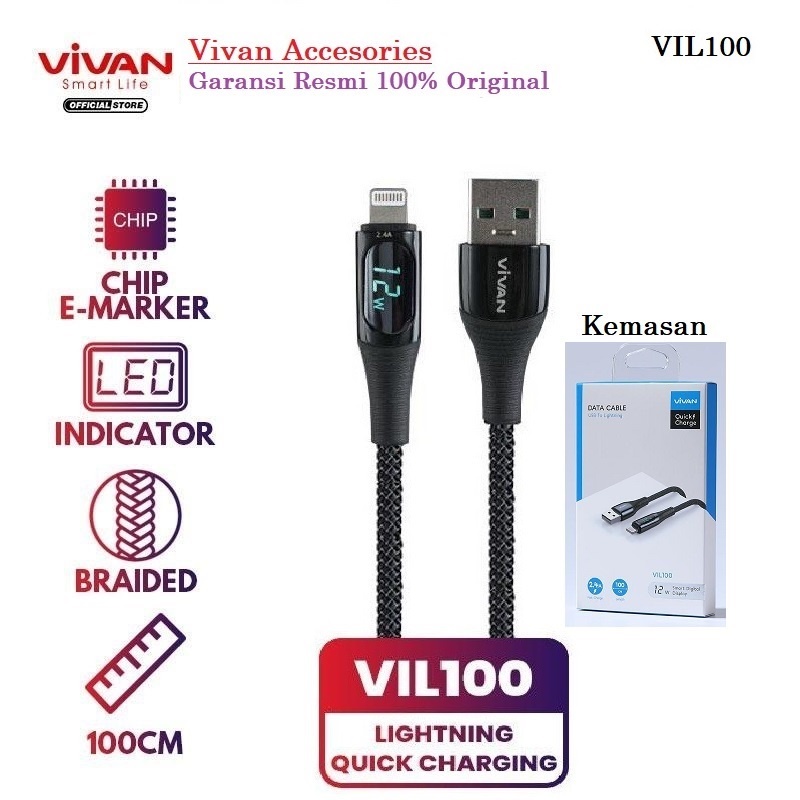 VIVAN Kabel Data VIL100 USB To Lightning 12W 2.4A 1M Fast Charging LED