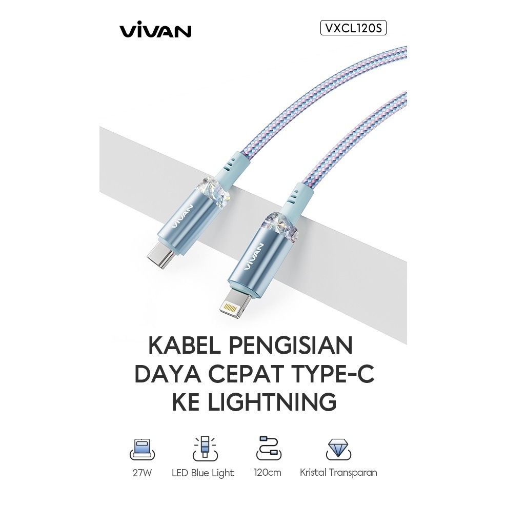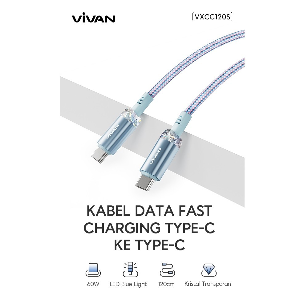 VIVAN Kabel Type C to Type C / Type C to Lightning Fast Charging PD 120CM Seri VXC VXCC120S / VXCL120S new