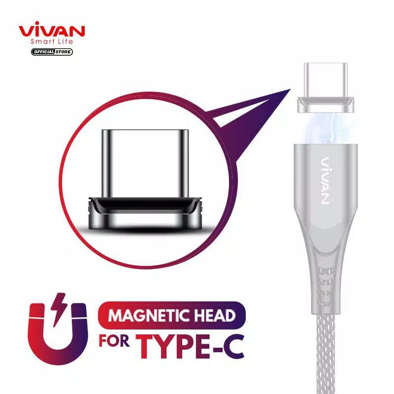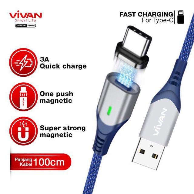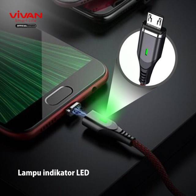 VIVAN MGM100 Kabel Magnet Micro USB Fast Charging 2.4A Super Strong Magnetic Garansi Resmi 1 Tahun
