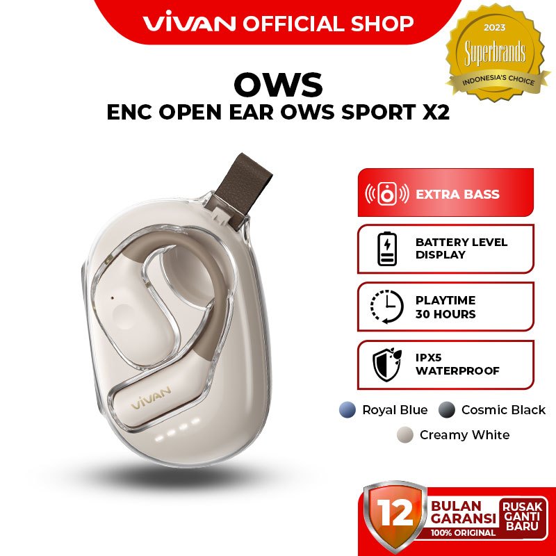 VIVAN SPORT X2 OWS Open Ear True Wireless Earbuds IPX5 Dual ENC BT5.4 Low Latency Garansi 12 Bulan