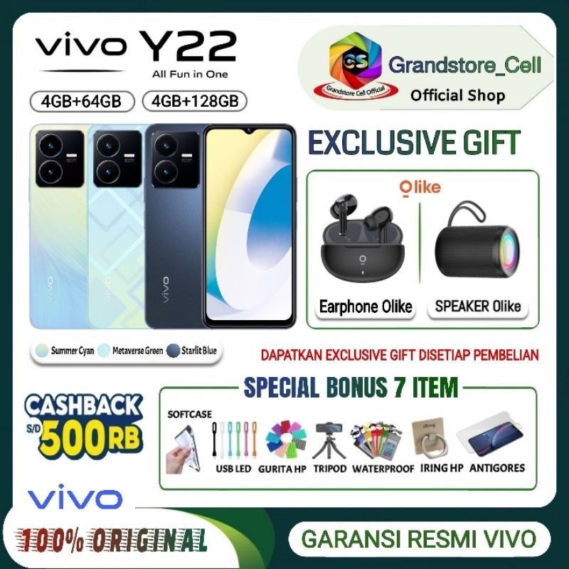 VIVO Y22 RAM 4/64GB - VIVO Y 22 RAM 4/128GB - 6/128GB GARANSI RESMI VIVO INDONESIA