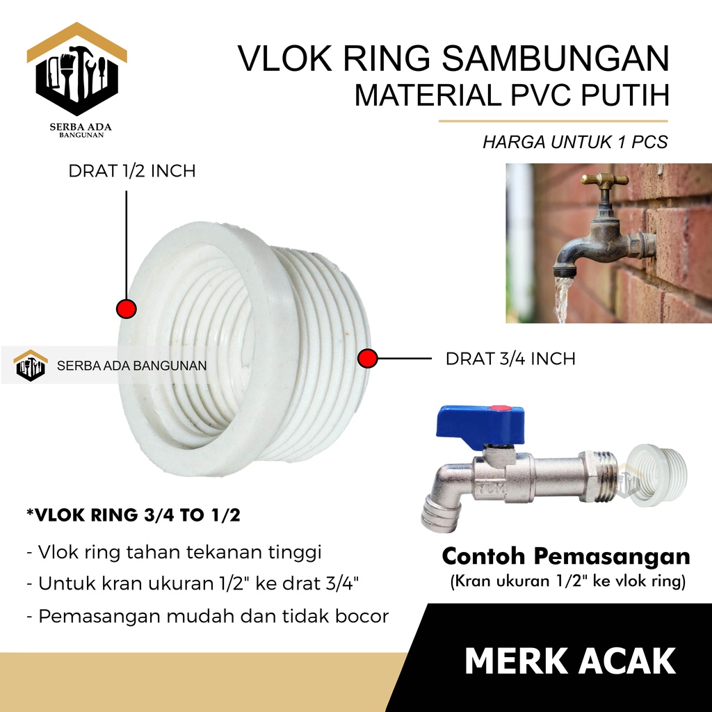 VLOK FLOCK FLOK RING 3/4" KE 1/2" PVC BABET KUNINGAN ASLI / SAMBUNGAN PIPA DRAT KRAN EKONOMIS KUAT